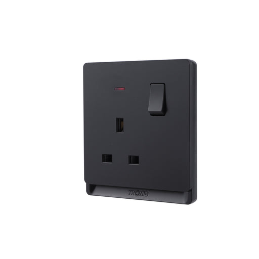 1 Gang 13A Socket with Neon – Black