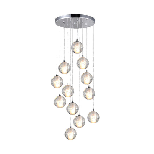 SKU WH 2024-G912-08-CHAdd luxury and elegance to your interiors with this 12-globe crystal pendant chandelier. The polished chrome canopy and cascading crystal globes cr...