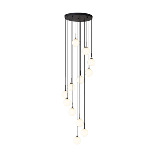 12-Globe Spiral Pendant Chandelier with Matte Black Finish