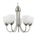 • Design: Classic pendant with five gracefully curved arms and frosted tulip glass shades